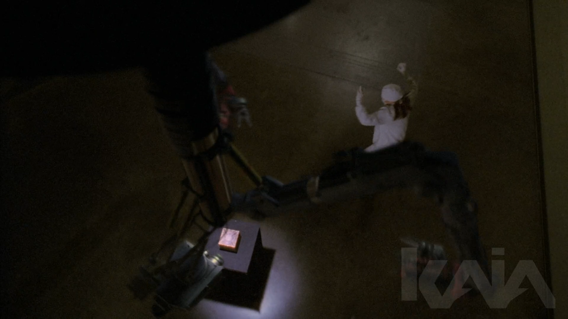 Main character Sydney Bristow interacts with an intricate two-armed robotic scanner protecting a vault. The robot had to appear intelligent and threatening while matching live-action movement frame-by-frame.Want to see another example? Read what JJ Abrams said about KAIA’s biomechanical arm visual design for Fringe. Read more